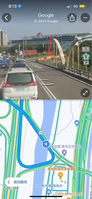 大約07:50從南屯五權西北上在閘道處(如圖)看到一隻黑柴逆向獨自散步中,疑似有帶