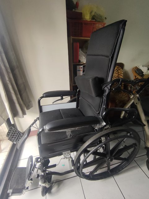 物品說明:家中長輩過世後留下的輪椅,可全躺,約八成新,長輩享嵩壽102歲,已放對