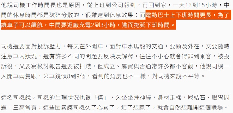 推 ruye : 司機說電巴要回廠充電,更花時間,延誤下班。 09/18 09:28