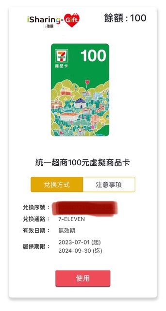 7-11 虛擬商品卡100*6