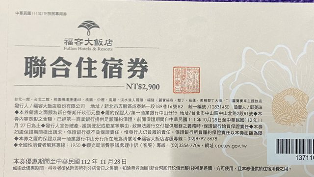 交易物品:福容住宿券