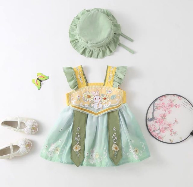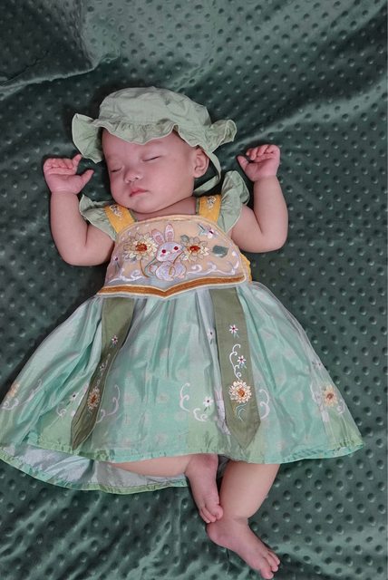 1.綠色兔子漢服(含帽) 尺寸73 穿一
