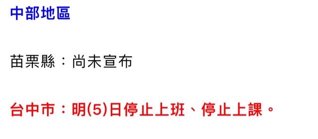 → jimmychung07: 這次台中放比上次海葵合理多了好嗎? 10/04 20:33