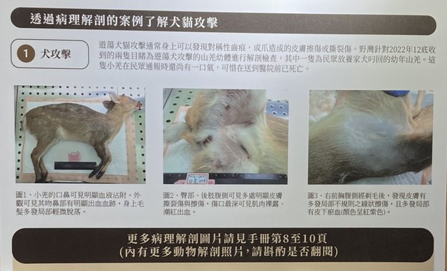 除了犬隻,貓咪在外遊蕩,對野生動物也有危害,從展覽上野生動物急救站提供的數據可