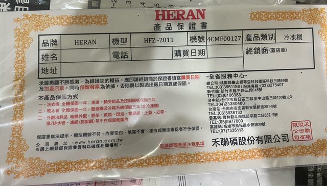 物品名稱 : 小冷凍櫃