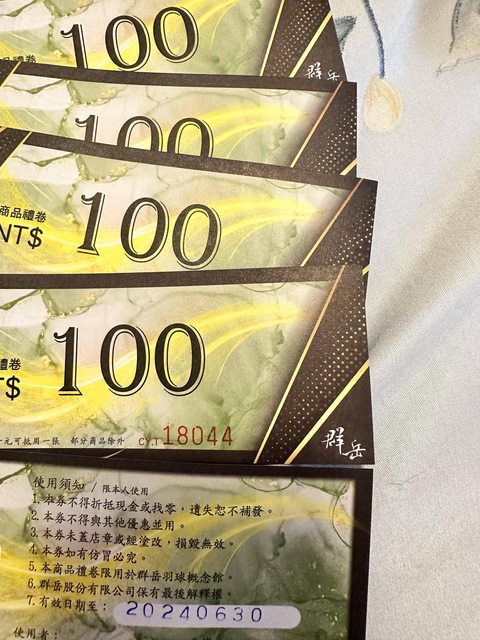 2-1群岳100元折價券5張-洽中