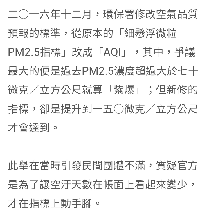 推 seou : 不過在2016之後中央更改空汙標準 現在很難紫爆了 改 10/18 09:01
