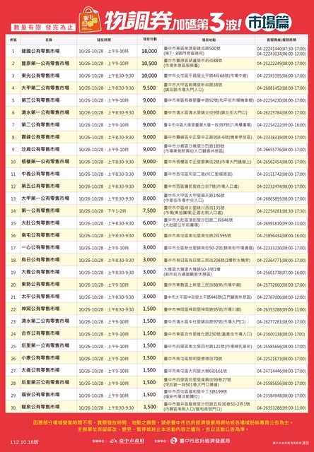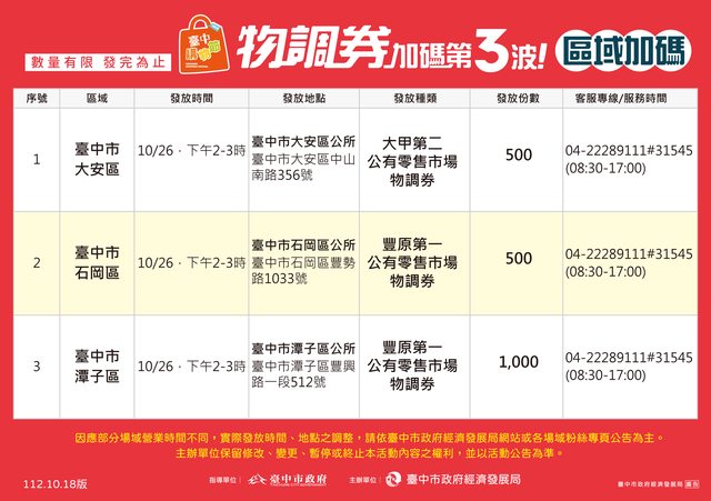 標題[資訊] 「臺中購物節」物調券加碼第3波 物調與