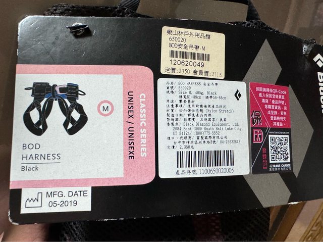 物品1名稱 黑冰攀岩吊帶M 全新