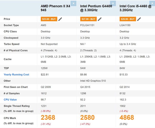 六台主機CPU跑分參考: