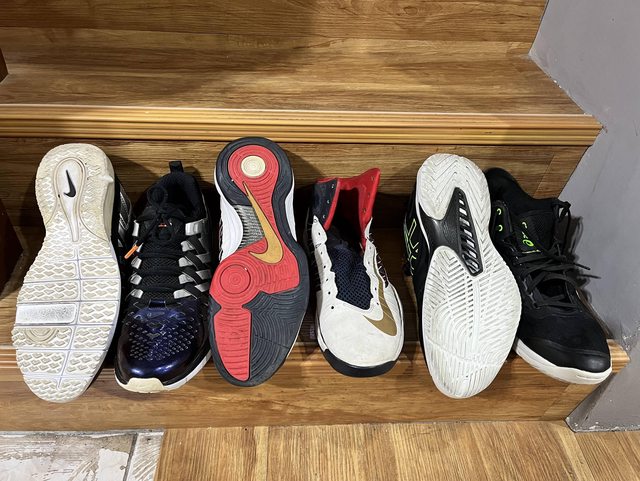 少穿但需黏底。2. Hyperdunk 2012 ,應該還沒有氧化,也須黏底。3. Asics Gelburst 26