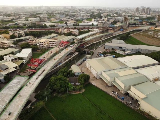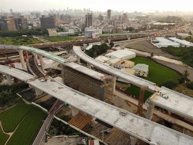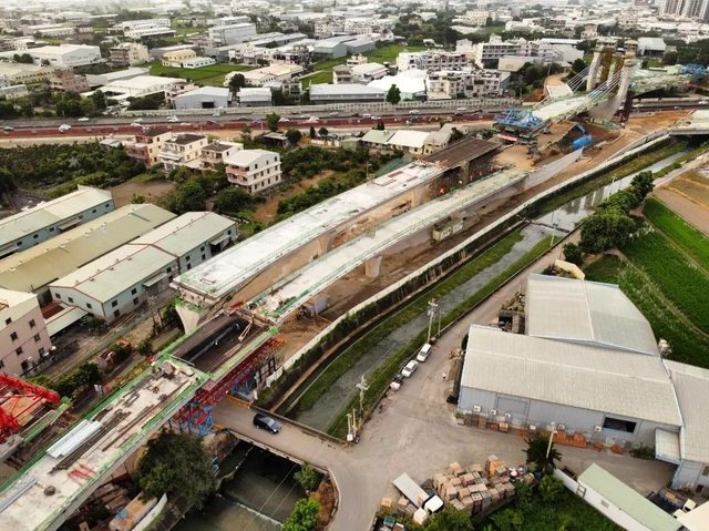 的橋樑,也持續拉鋼索,並採用懸臂式工法,逐一讓橋樑結構合攏,未來完成後,將以《雙塔雙