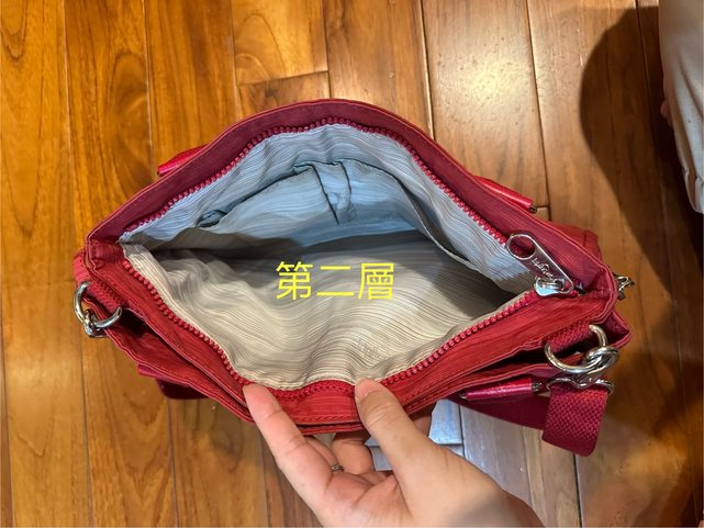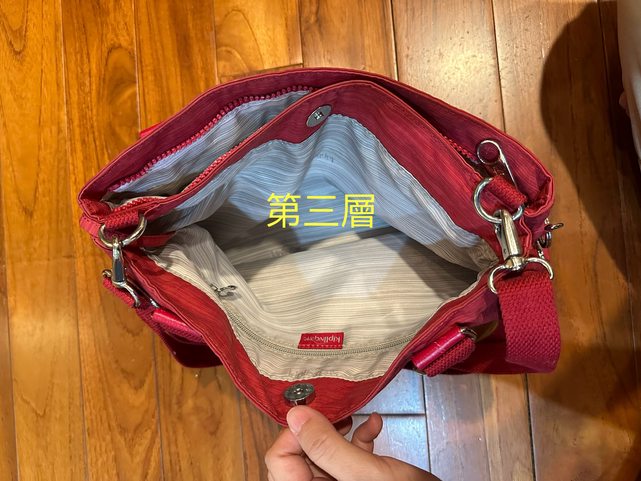 物品名稱:Kipling紅色側背包 物品說明: 1. 大小: 33x24x8 (cm),可提可側背 2. 有使用痕跡,正面右下方有黑漬,內裡夾層因為是白色所以有泛黃,不介意者再來信 3. 總共有四層,詳細可參考照片 物品實照: