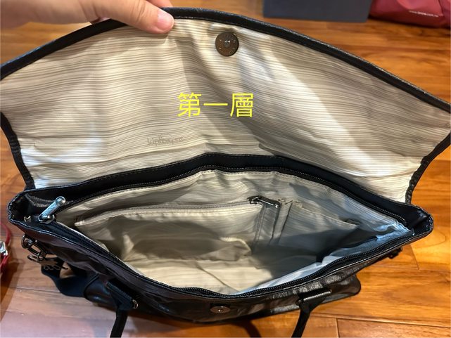 物品名稱:Kipling黑色側背包/可做公事包及電腦包 物品說明: 1. 大小: 40x28x13 (cm),可提可側背,可放15吋筆電 2. 有使用痕跡,內裡夾層因為是白色所以有泛黃,不介意者再來信 3. 總共有三層,詳細可參考照片 物品實照:
