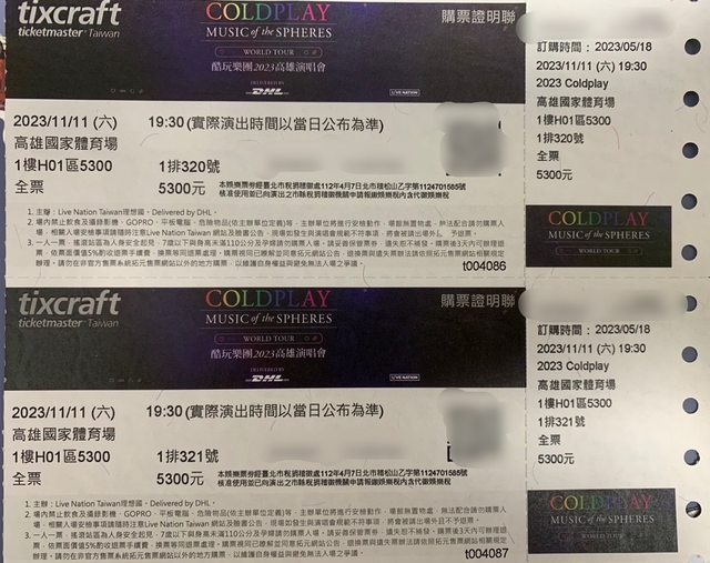 標題[交易] 台中 11/11 ColdPlay 演唱會門票