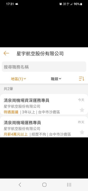 標題[情報] 星宇航公台中徵人
