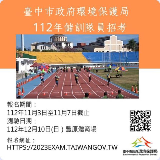 台中市政府環保局將舉行清潔隊儲訓隊員甄選,預計進用200人,包括一般類組85名、儲備