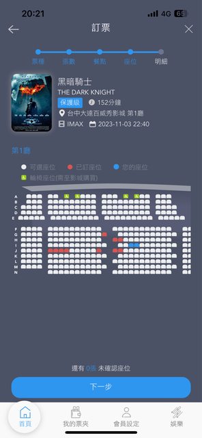 拿同一廳的《黑暗騎士》來示意座位位置如下: