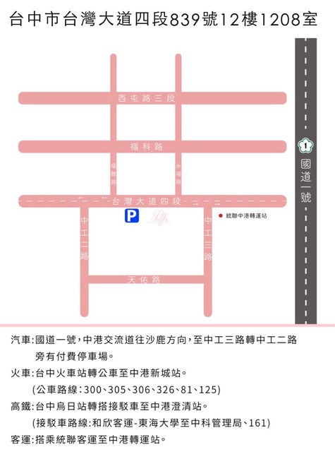地址:台中市西屯區台灣大道四段839號12樓1208室