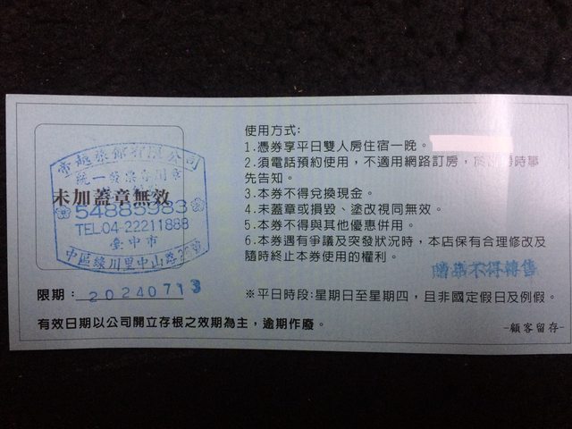 標題[商業] 台中清新溫泉飯店 雅緻客房平日住宿券