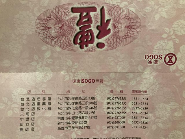 標題[商業] 北屯/遠東SOGO禮券八折出售