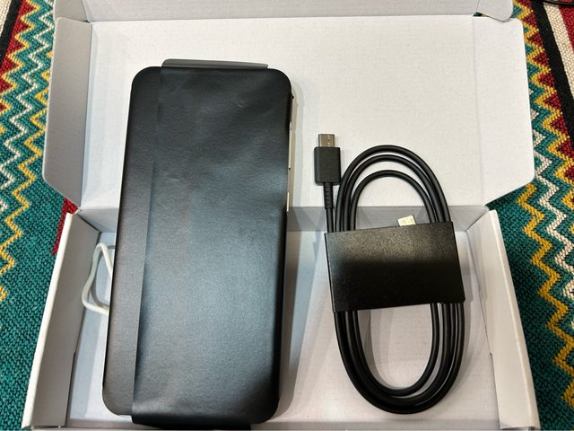 全新,但因為是手機保險加價換購的機子,因此附的只有充電線而已。