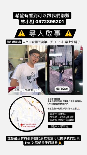 → natsu1725 : 謝謝樓上版友們的集氣,警方剛剛找到人了!11/11 23:08