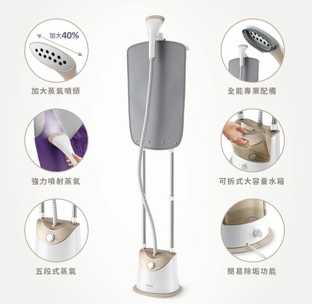 A. 飛利浦直立式5段蒸氣掛燙機 (附掛燙板)-質感霧金色(GC488/60) -2年保固
