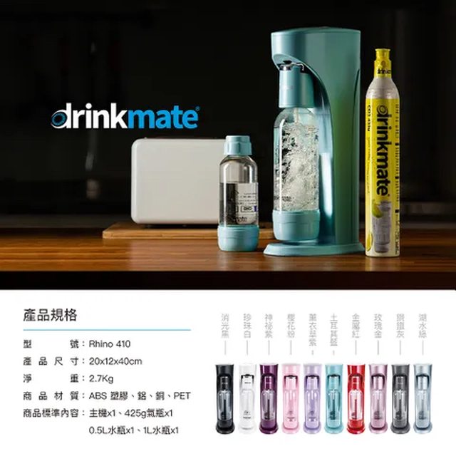 B: 美國 Drinkmate 氣泡水機 Rhino(珍珠白), 附一隻氣瓶-3年保固