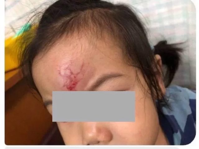 台中大里一名小女孩,在十九甲公園玩耍,摔頭破血流。圖/江和樹提供