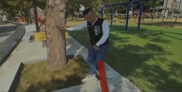 ,牛頭不對馬嘴。他到公園勘查,5個樹穴有5個危機,還有遊戲場與水泥平地的落差,可