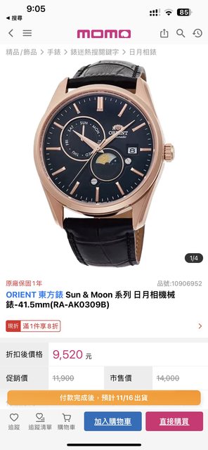 物品:ORIENT 東方錶 Sun & Moon 系列 日月相機械錶-41.5mm(RA-AK0309B)