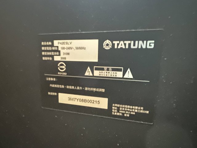 [交易] 物品A/價格 二手大同電漿42吋電視 NT1,500 物品A實照
