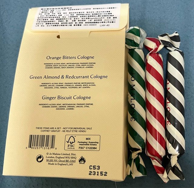1-6 耶誕針管組(苦橙/薑餅/綠杏仁與紅醋栗) 針管香水 整組全新售350元