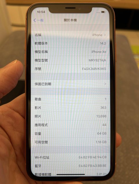 [型號] iPhone XR 64G [規格] 64g [保固] 已過保 [盒裝配件] 完整盒裝,原廠豆腐頭,耳機 [售價] 4200元 [交易方式/地點] 台中市區面交 [連絡方式] 站內信或line ID:0921771280 [商品照/補充說明] 無明顯刮痕,有使用痕跡(參閱照片),沒有換過零件,電池壽命78%