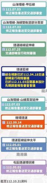 1.捷運藍線-綜合規劃:目前於行政院審議階段(交通部於112.4.18轉呈行政院)