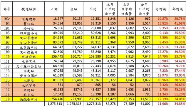 5、本文參考 Sunny821210、TaiwanXDman板友高雄捷運各站旅運量的發文格式。