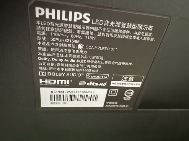 交易物品:二手PHILIPS飛利浦50吋4K UHD LED Android顯示器