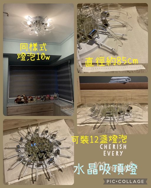 物品說明:多出的水晶吸頂燈,因室裝風格完全不搭。