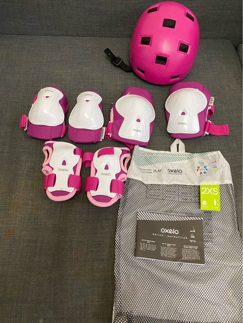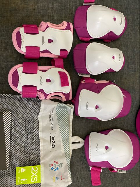 物品E: OXLEO 兒童護具粉 2XS +安全帽47-52公分 一起出售400元 不分售 小孩都在家裡配戴騎滑步車使用 物品E實照