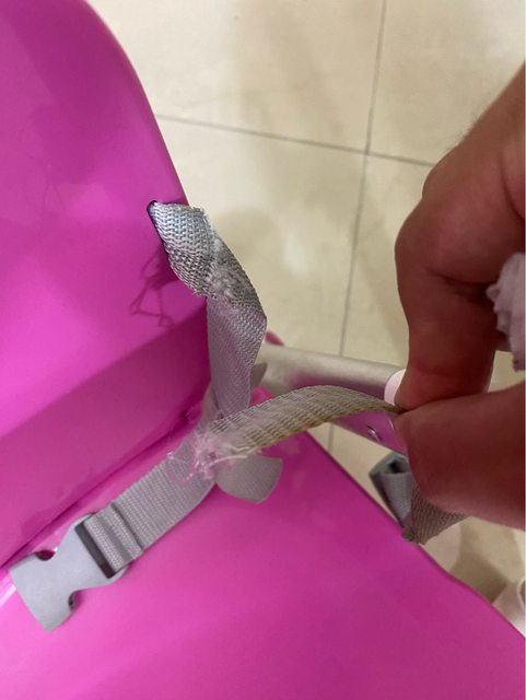 物品D: Apramo 粉色可折疊座椅 固定帶遺失 有附原廠提袋 然後左側邊安全帶斷裂 其餘如圖 原價2300元 出售500元 物品D實照