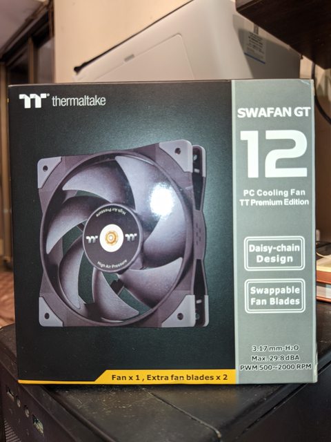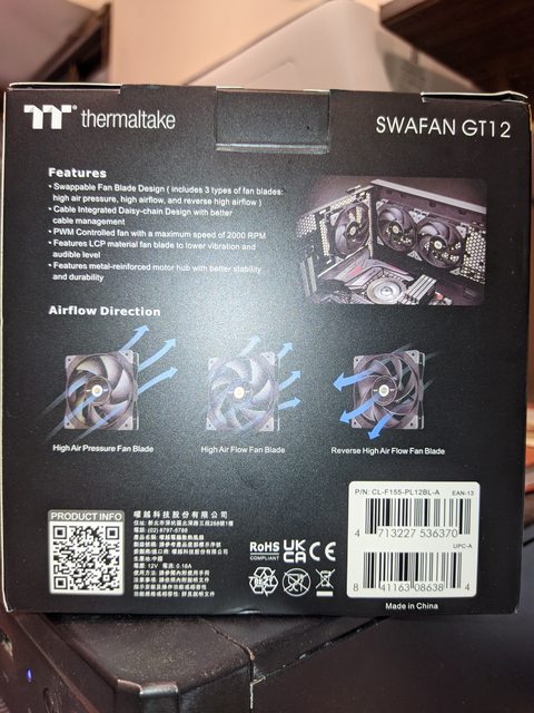 單風扇包裝,內含一個12公分風扇外框+3個可拆卸扇葉