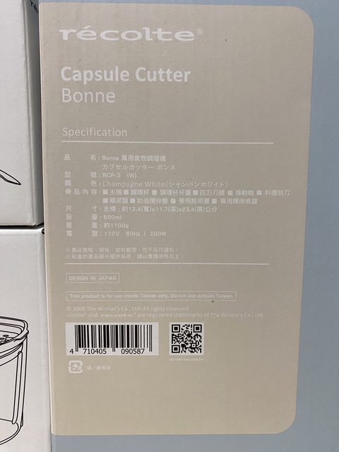 [商品名稱] 2.recolte 麗克特 Bonne萬用食物調理機(RCP-3)(2100購入)