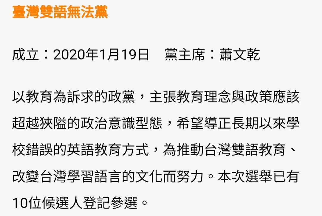 → tommylai : 雙語無法黨...真的有這個政黨欸XD 11/25 10:02
