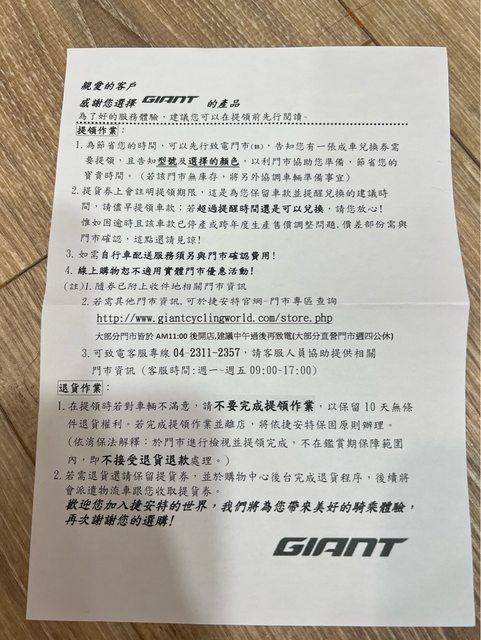 可全台捷安特配合店家取貨