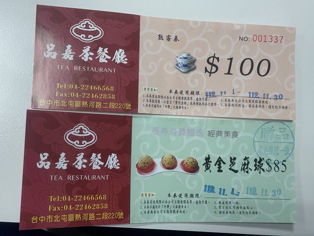 物品名稱:品嘉茶餐廳 點心招待券+熟客券