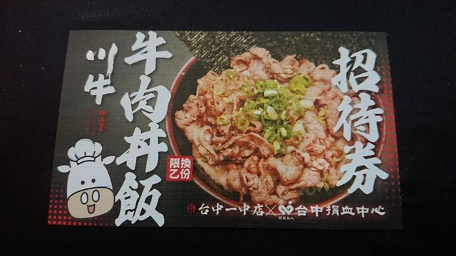 物品名稱 :川牛牛肉丼飯兌換卷一張