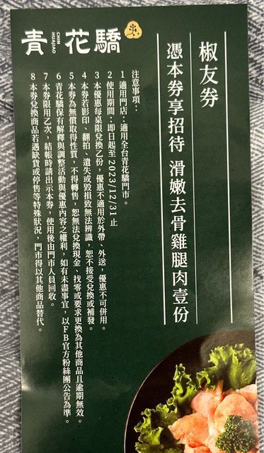 1.青花驕雞肉兌換券
