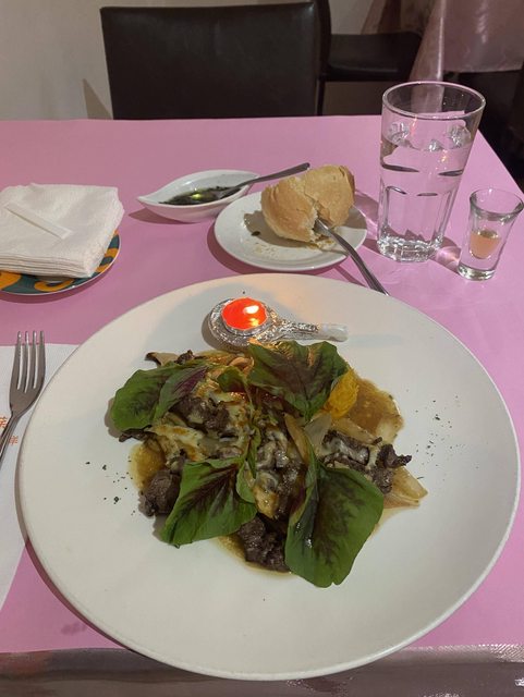 點了一份紅酒菲力塊680元(加一成服務費)