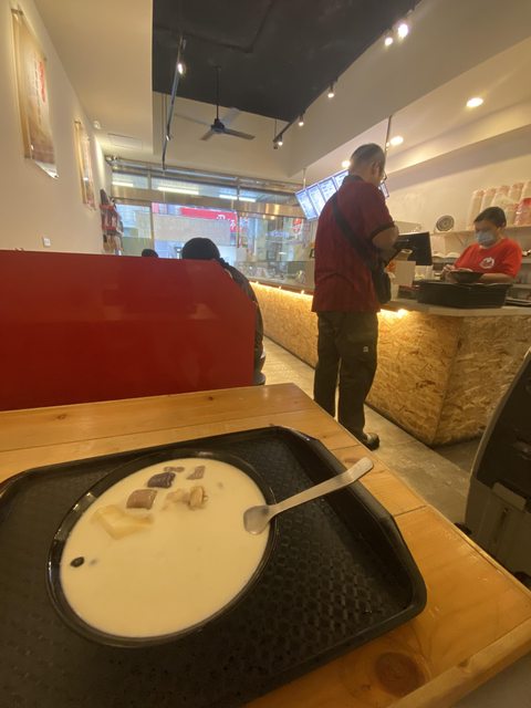 然後他們芋頭牛奶超濃郁 搭挫冰 豆花會超好吃那種 但拿來配排餐覺得不是很搭哈哈
